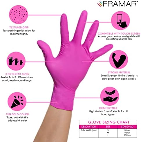 **FRAMAR Pink Gloves Disposable Latex Free – Pink Nitrile Gloves (Medium)**